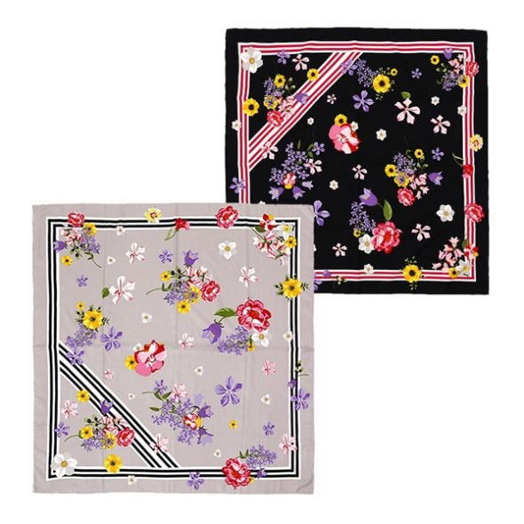 TRENDY PAÑUELO SEDA GRANDE C/FLORES Y RAYAS COMBINADAS
