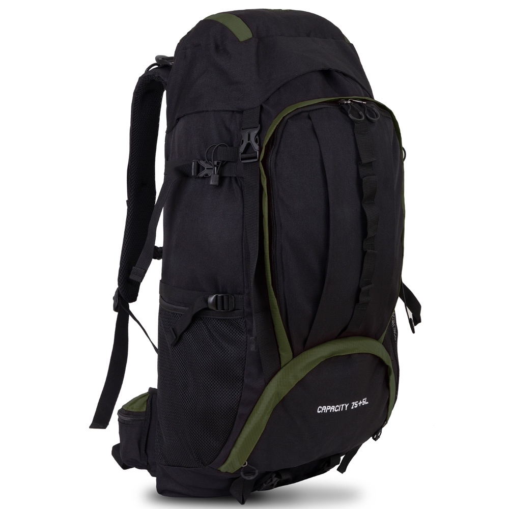 DISCOVERY MOCHILA VERDE 75+5 LTS TRICOLOR CAMPING C/BOLSILLOS Y BROCHES