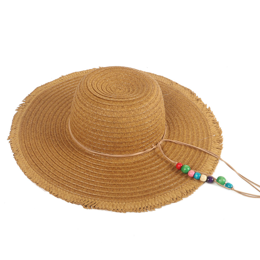 VE26 TRENDY CAPELINA RAFIA CAMEL C/LINEAS COLOR
