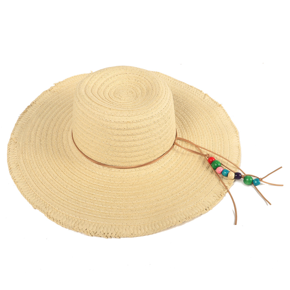 VE26 TRENDY GORRO RAFIA BEIGE C/LAZO NEGRO