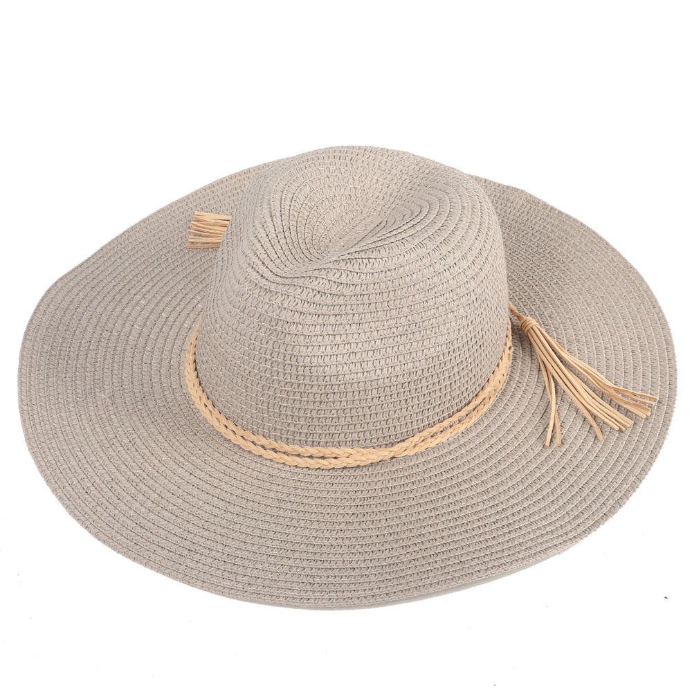 VE24 LAS OREIRO CAPELINA RAFIA GRIS C/DOBLE CORDON TRENZADO