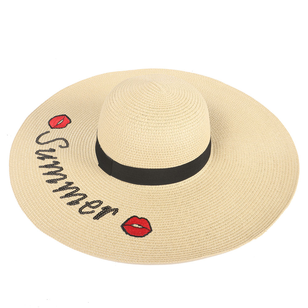 VE24 LAS OREIRO CAPELINA RAFIA NATURAL C/BORDADO SUMMER Y LAZO NEGRO