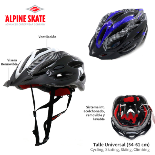 ALPIN SKATE CASCO NEGRO C/AZUL VENTILACION Y VISERA REMOVIBLE