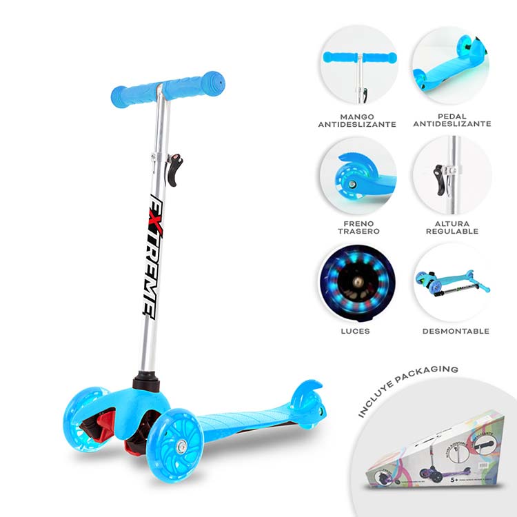 MONOPATIN CELESTE TRES RUEDAS C/LUCES EXTREME