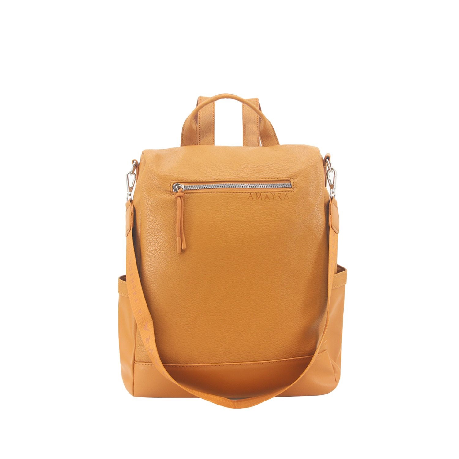 IINV25 AMAYRA MOCHILA CAMEL PU C/SOLAPA Y DOBLE BOLSILLO FRONTAL