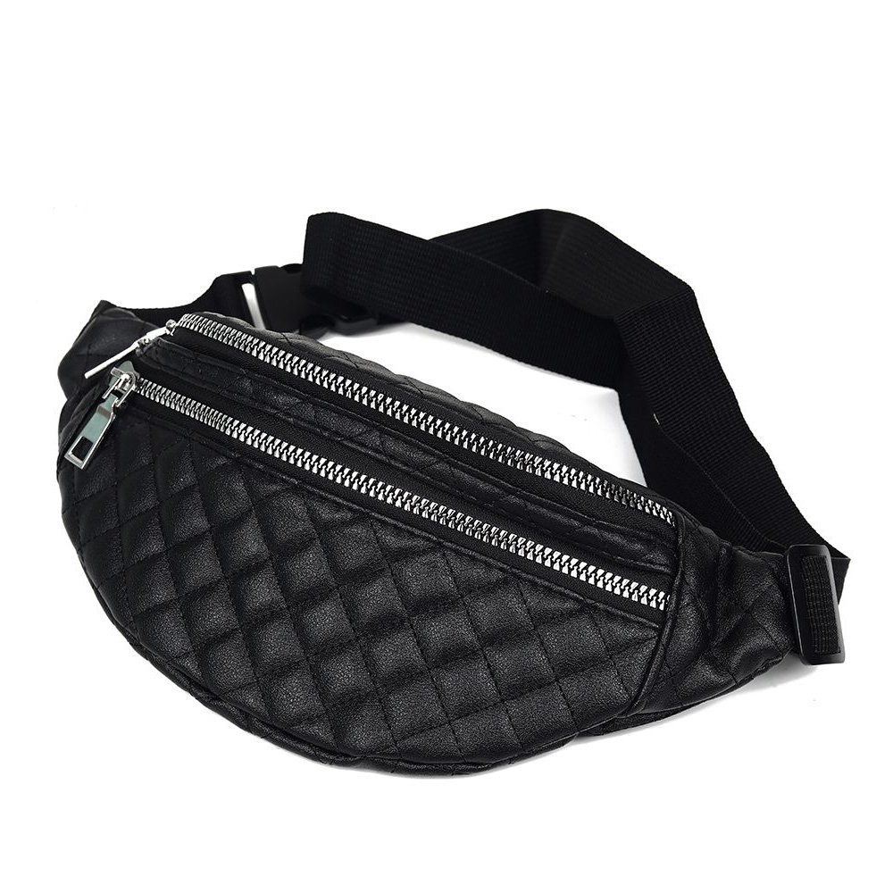 RIÑONERA NEGRA PU MATELASEADA 2 CIERRES SKORA