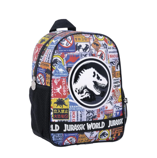JURASSIC WORLD MOCHILA JARDIN 12" ESTAMPADA C/APLIQUE CIRCULAR