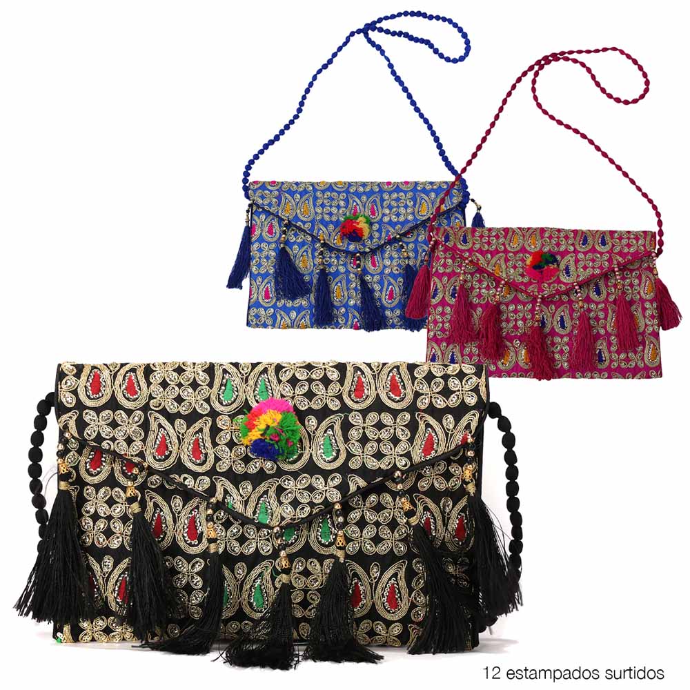 INDIA SOBRE BANDOLERO C/BORDADOS Y BRILLO Y SOLAPA C/ESFERAS Y FLECOS TRENDY