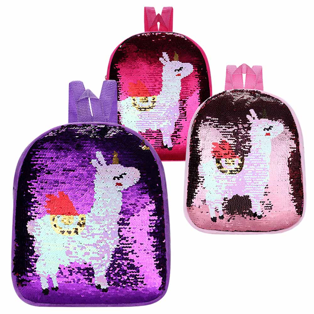 MOCHILA JARDIN EN PELUCHE C/FRENTE LENTEJUELAS REVERSIBLE LLAMA